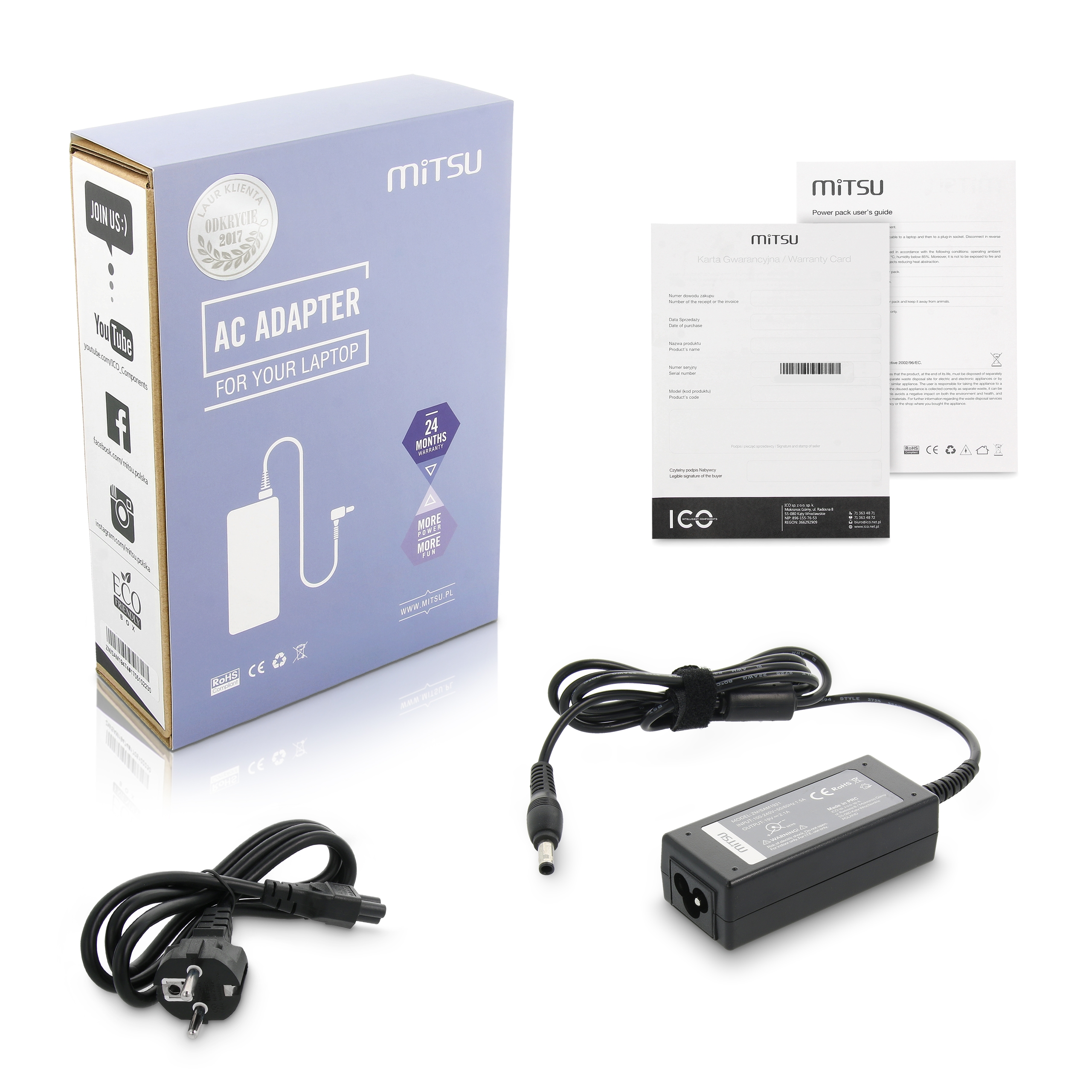 Zasilacz Mitsu 19v 2.1a (5.5×3.0 pin) 40W do Samsung